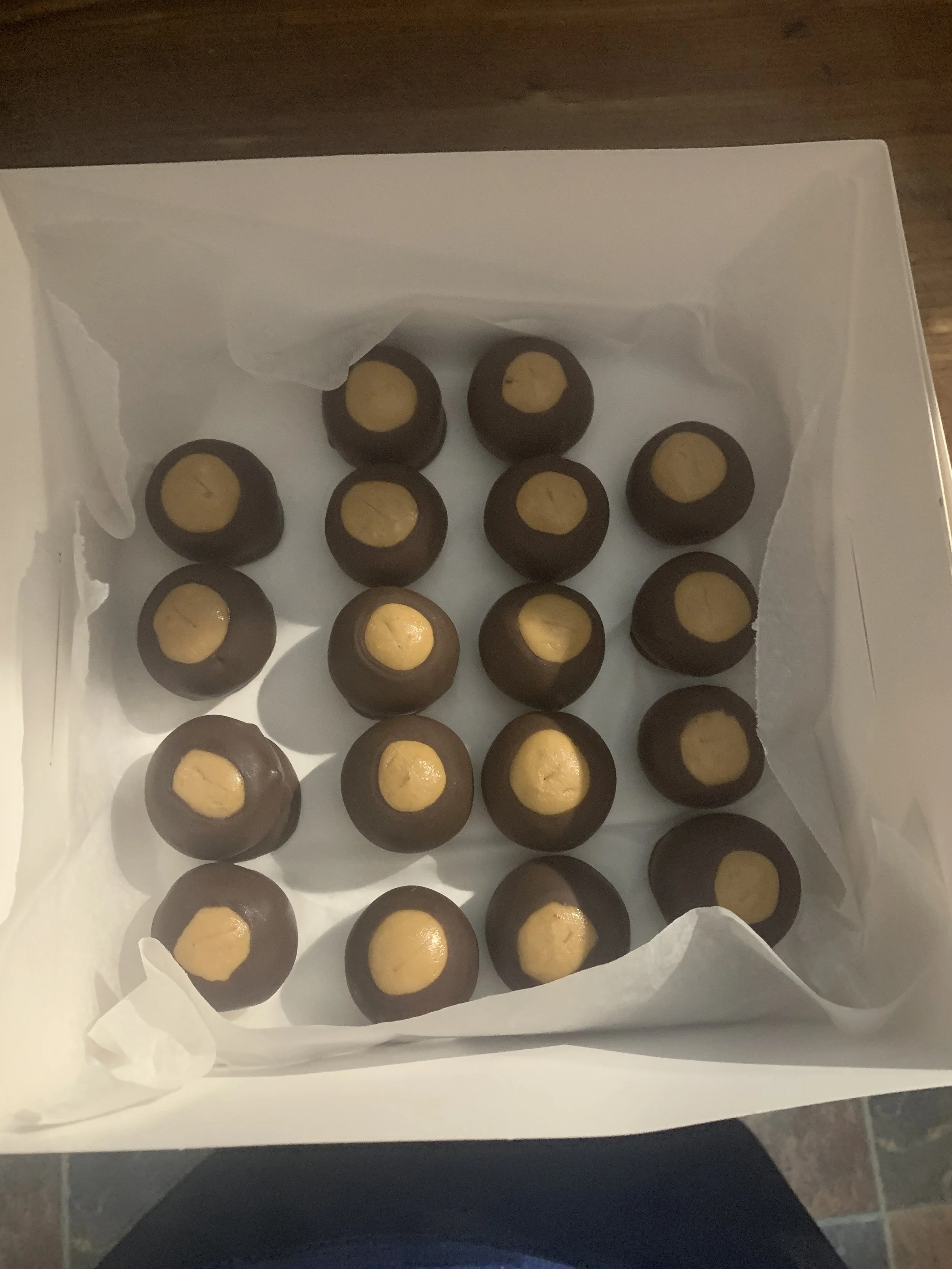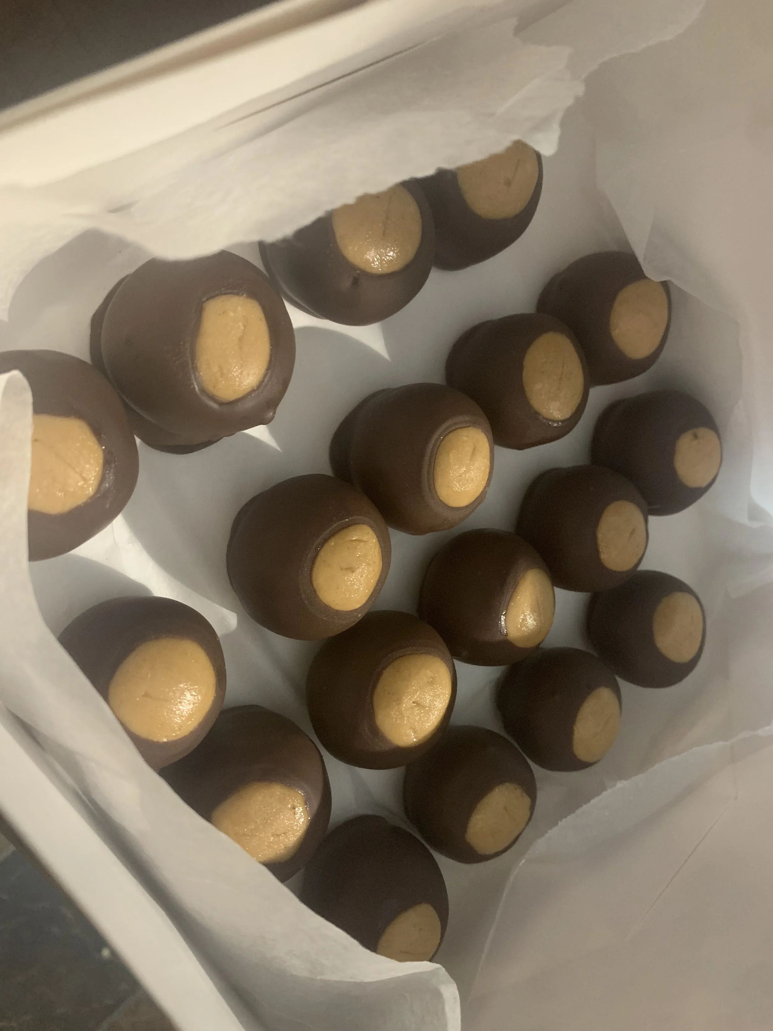 Mama’s homemade buckeye balls feature a creamy peanut butter filling and a milk chocolate coating. Each order includes 18 delicious candies.